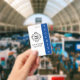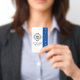 This identification badge for a security guard or employee features a white background with a sample logo in the centre. You can personalise the ID badge to display your own company, business or organisation logo, or your own custom image. There is an area beneath the logo to print an employee name or other text. The word "SECURITY" is printed along the right side over a blue banner. The back of the ID badge has a blue background with white text where you can include your company phone number or other information.