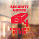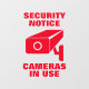 Security notice cameras in use general warning Window Cling for business. Custom warning sign for shop, office building and more. Static non adhesive Window Cling. Custom signs for home, shops, museums, business, office, workplace, school, store, company, hospital and other public places. Make your own signage with custom text. Non adhesive. Sticks to window. Caution sign for customers, clients, visitors, guests etc. Face outwards or inwards, printed on one side. Red or custom colour.