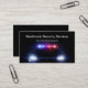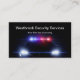 Modern security services business card template created with a patrol car on the front with it's lights lit up in a smart two side design that features your company name and tagline on the front along with your business information on the back so you don't waste one side of your cards.