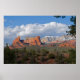 A day after a heavy snowfall, these Sedona, AZ mountains have just a dusting of snow in the higher elevations. Framed by fluffy white clouds in the sky, these mountains are magnificent!