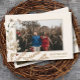 A boho-inspired wedding save the date design. Include a favourite photo on the front and another on the back. Background colours can be easily changed to suit your photo.