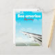 See America "fly today" vintage vacation print of a airliner wing and a view outside.