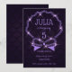 Beautiful and elegant birthday invitation for girls.See Shell with mermaid scales and purple glitter effect with name of the girl and party location on the front.
