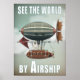 Vintage looking poster is an original digital piece of artwork by artist K.A.Grayce and available exclusively here. Featuring the Airship Aluetian this Steampunk inspired dirigible takes to the sky for a tour around the world. Reminiscent of those old vintage travel posters of the 1930's this poster has a aged look with historically bold typography.