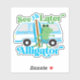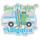 This cool Gator has his sunglasses and surf board leaning up against a retro Old School Van. He's ready to "See ya Later" with this custom original illustration I made in 2022 (for a Van Lover). You can own your very own sticker - sizes are in the drop down menu. This would look great on luggage, laptops, water bottles - whatever you desire!