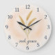This soft watercolour design features three golden wheat stalks painted in delicate, earthy tones, symbolising abundance, resilience, and quiet strength. Surrounding the artwork, handwritten navy hour numbers form a clean, elegant frame that suits any room style.