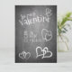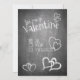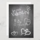 Valentinsgrüße im Kreidetafel Stil mit Herz und handschriftlichen Grüßen im Kreidelook auf der Vorderseite der Karte. Restliche Flächen stehen zur freien Verfügung.