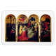 The Seilern Triptych (also known as Entombment ), variously dated c. 1410-15 or c. 1420–25, is a large oil and gold leaf on panel, fixed winged triptych altarpiece generally attributed to the Early Netherlandish painter Robert Campin. It is the earliest of two known triptychs attributed to him, although the outer wing panels paintings are lost. The work details the events of Christ's passion; with iconography associated with the liturgy of Holy Week. The panels, which should be read from left to right, detail three stations of the cycle of the Passion of Jesus; the crucifixion, the burial and the resurrection.