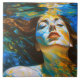 “Selene” - Women In Water. In this serene, colourful fine art women water scene, a beautiful woman with long red hair floats in a blue swirling sea. Sunlight dapples her peaceful face beneath the water's surface. With eyes closed and face lifted, she absorbs the light, embodying a strong, resilient, and inspiring figure in this multi-coloured picture.