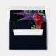 A self-addressed navy blue envelope with gold text featuring a burgundy and blue floral lining. The envelope is the appropriate size to fit 3.5 x 5" RSVP response cards.