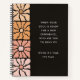 Journalling Prompts for Self-Discovery Retro Boho Floral Notebook... On a chic liquorice black background, a border of groovy boho flowers draws your eye to a heartfelt saying that reminds you to reflect on your life and especially any limiting beliefs or inner blocks that may be holding you back from truly living your dreams and enjoying new experiences and adventures that your soul craves. We've all been there... and journalling is a personal, private way to explore the possibilities you've been shying away from. The back of the notebook displays 10 writing prompts to jumpstart your self-discovery journalling adventure. Words and design by Barbara Casey, Inspirational Writer.