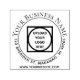 This personalised, round, return address self-inking rubber stamp for your business has a sample logo inside a circle. There is a sample name, return address, and website forming a round shape.