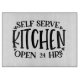 Add style to your kitchen and entertainment areas with a Self Serve Kitchen Open 24 Hours Cutting Board. Made with hand-pressed tempered glass, these eye-catching cutting boards are great for prepping and serving.