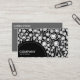 A business card template with a black semi-circular panel decorated with a white dotted line in the bottom left for your Company name and business type. The semi-circular panel is placed over a photo or artwork background (which can also be changed). Name and other contact details on the reverse.