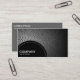 A business card template with a black semi-circular panel decorated with a white dotted line in the bottom left for your Company name and business type. The semi-circular panel is placed over a photo or artwork background (which can also be changed). Name and other contact details on the reverse.