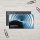 A business card template with a black semi-circular panel decorated with a white dotted line in the bottom left for your Company name and business type. The semi-circular panel is placed over a photo or artwork background (which can also be changed). Name and other contact details on the reverse.