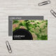 A business card template with a black semi-circular panel decorated with a white dotted line in the bottom left for your Company name and business type. The semi-circular panel is placed over a photo or artwork background (which can also be changed). Name and other contact details on the reverse.