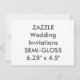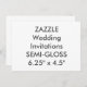 Custom SEMI-GLOSS Wedding Invitations - 6.25" x 4.5". A thin, smooth glossy paper designed for photo printing with the optimal colour vibrancy, ideal for full colour printing. 40% post-consumer (recycled) content. 110lb, 12.5 point thick card. MADE IN THE USA. Big bulk buy multi purchase discount savings on invitation cards, up to 50% off your purchases for multiple item orders. Zazzle Wedding Invitations - Create, make, design your own custom wedding invites from this fully customisable, personalised Zazzle invitation card design template blank. High quality, full-colour, full-bleed printing on both sides with Standard or HIGH-DEFINITION print options. Size Options: 5" x 7", 4.25" x 5.5", 3.5" x 5", 4" x 9.25", 5.25" x 5.25", 4.5" x 6.25", 5.5" x 7.5", 6.5" x 8.75”. Orientation Options: Vertical (portrait) or horizontal (landscape). Finish Options: Semi-gloss, Matte, Ultra-thick, Laid, Linen, Columned, Felt White, Felt Ecru, Kraft, Pearl Shimmer, Champagne Shimmer & Metallic Silver. Card Shape & Style Options: Standard or Rounded Corners (all sizes); Bracket, Scalloped, Ticket or Tag (5” x 7” only); Circular (5.25” only). Standard white envelopes included, with upgrade options. Perfect for wedding invites, bachelorette, bridal shower, rehearsal dinner, save the date etc, and for any RSVP party invitations, such as anniversary, birthday, sweet sixteen and Quincenera; or for corporate event & exhibition invites - for photo, image, text, bride & groom, or your own unique personalised design creation.