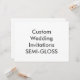 Custom SEMI-GLOSS Wedding Invitations - 8.75" x 6.5". A thin, smooth glossy paper designed for photo printing with the optimal colour vibrancy, ideal for full colour printing. 40% post-consumer (recycled) content. 110lb, 12.5 point thick card. MADE IN THE USA.