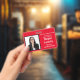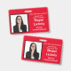 Horizontal Seminar Attendee badge in Red and White. All elements can be changed, including: photo, seminar name, seminar location & date, attendee's name, attendee's title and the name of the company. Horizontal orientation. Slot at top for a lanyard. Also available in vertical orientation in this store.