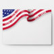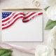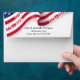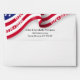A modern and lively 4th Of July's 250th anniversary celebration from 1776 to 2026 envelope to match the invitation that features a cropped blowing American flag with dates 1776 - 2026 on the red stripes at the top of the front and back side of the envelope.