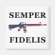 Magnet with a M16 done in an American flag with the words "Semper Fidelis"