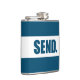 The flask itself is fine. It’s a cheap flask, obviously bought in bulk, however am prepared to overlook that. Given that it is a personalized item, I would have liked to have seen gift boxing instead of the generic packaging. Terrible printing, and/or quality. It’s a cheap, tacky vinyl. It is not cut straight and is also applied in a way that it is overhanging the bottom, causing the glue to catch on items and it will eventually roll and tear, damaging the wrap.