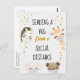 Send a cheerful postcard to family and friends to let them know you miss them. A cute design featuring watercolor lovely zoo animals wearing masks and gold glitter. Personalise the front "sending a hug from a social distance" wording if needed and the back with your return address, custom message, and name (you can also delete message and name to handwrite your message & name). To access advanced editing tools, please go to “Personalise” and then "click to customise further" link. The glitter details are simulated in the artwork. No actual glitter will be used in the making of this product.