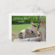 Postcard with a photo of a sad and lonely donkey standing with his head leaning against a fence. The text, which says, "Sending a little cheer!" is completely customisable. Make it say whatever you would like.