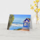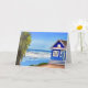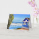 Thinking of a friend, sending happy thoughts their way card. Pretty blue beach cottage vacation home on the blue ocean tropical ai generated art.