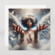 Blank card. Pretty ai illustration of a beautiful African-American angel with her hands out like she's offering some good energy.