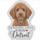 Make your pup the face of the Motor City with this premium die-cut vinyl sticker. Unlike standard square stickers, this design is contour-cut around the shape of your dog and the elegant "Sending Love From Detroit" script, creating a modern, floating effect perfect for water bottles, laptops, and phone cases. Simply upload a cutout photo of your dog (with the background removed) to create a durable, waterproof decal that lets you stick a little Michigan pride wherever you go. Design Tip: For the perfect die-cut border, please ensure your uploaded photo has a transparent background!