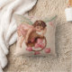 In this vintage image a cute little dark-haired fairy with beautiful, large, translucent wings is flying with a wicker basket and spilling pink hearts from the sky. She is sending love your way!