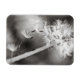 A black and white photograph of a Dandelion plant. The flower has gone and now the breeze is sending out the seeds for future growth.
