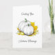 Black card with Autumn Blessings. Pretty white pumpkins and Fall folliage.