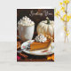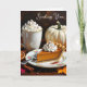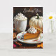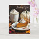 Pretty Fall themed greeting card saying, "Sending you Autumn Blessings" for a friend or family member. An ai illustration of a yummy Autumn scene with a piece of pumpkin pie and whipped cream on a fancy vintage plate, a mug of hot cocoa with whipped cream and a white pumpkin surrounded by cinnamon sticks and dried orange slices.