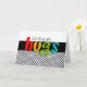 Sending you "hugs", greeting card. Perfect simple card to show you care and offer comfort for whatever the need is. Black and white polka dots with big, colourful lettering for HUGS.