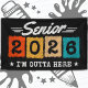 This Class of 2026 senior design is perfect for high school seniors or college graduates. Great for the proud senior class of 2026 student celebrating their last school year before their 2026 graduation! Features "Senior 2026 - I'm Outta Here" Senior Class of 2026 graduation senior quote w/ graduation cap & tassel in a retro vintage distressed style graphic.