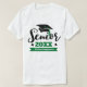 Celebrate your senior and graduation year with this modern t-shirt featuring a contemporary "Senior 2022" typography in black and green decorated with a black graduate cap with a green tassel; easily customise this t-shirt with your graduation year and name by editing the template fields.