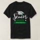 Celebrate your senior and graduation year with this modern t-shirt featuring a contemporary "Senior 2023" typography in white and green decorated with a black graduate cap with a green tassel; easily customise this t-shirt with your graduation year and name by editing the template fields.