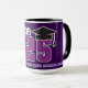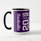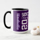 Celebrate your senior year in style with this custom "Senior Class of 2025" mug! Featuring a bold design with "SENIOR" in large white letters, "Class of" in elegant script, and the year "25" in striking purple and white outlined numbers. Personalise it by adding your name on the side and your high school name under the "25" to make it uniquely yours. The graduation cap on the "5" adds a special touch to commemorate this milestone achievement. Perfect for sipping your favourite beverage while reminiscing about your high school memories. 🎓
