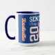 Celebrate your senior year in style with this custom "Senior Class of 2025" mug! Featuring a bold design with "SENIOR" in large white letters, "Class of" in elegant script, and the year "25" in striking orange and white outlined numbers. Personalise it by adding your name on the side and your high school name under the "25" to make it uniquely yours. The graduation cap on the "5" adds a special touch to commemorate this milestone achievement. Perfect for sipping your favourite beverage while reminiscing about your high school memories. 🎓