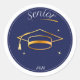 Celebrate your graduation in style with this elegant Senior Class of 2026 round sticker. Featuring a modern blue and gold graduation cap design, this minimal and stylish sticker is perfect for laptops, notebooks, water bottles, planners, and graduation party decorations.