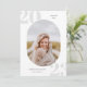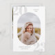 Rounded photo frame, senior class graduation announcement and invitation. Soft grey background graduation year numbers on white with template lines for year, graduate's name and school. Back of card features 4 additional photo spaces with text lines for your open house/graduation party details.