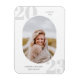 Rounded photo frame, senior class graduation announcement magnet. Soft grey background graduation year numbers on white with template lines for year, graduate's name and school.