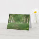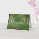 Presenting a treasured view of an arbor of trees in springtime. The note card image is a vision in green hues, with sunlight filtering onto the grass through the tree canopy. Photo is a full frame image with diminishing perspective. Blank inside for your message. Envision yourself rolling a hoop downhill on senior row on May Day!