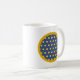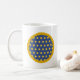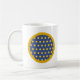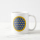 Synura are a single-celled, microscopic algae, often golden to golden-brown in colour, that tend to form spherical colonies in freshwater ponds, lakes, and slow moving rivers or streams. This design showcases colonies of these pretty, and sometimes smelly, little plankton as a polka dot pattern on a muted blue background. A golden border, shaped like the outline of the colonies masks the pattern to create a whimsical final touch. This mug is available in a variety of colours, sizes, and styles including classic mugs and steins.