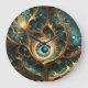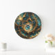 Sense Of Sight Teal And Gold Fractal Abstract Art, Large Clock