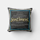 phrases of sentiment embrace this pillow along with a bold graphic of the word Sentiment. Back side is solid black but colour can be changed to olive green, white, blue or gold to keep colour design.