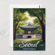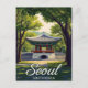 Transport yourself to the heart of South Korea with this beautiful vintage travel design featuring the iconic Hyangwonjeong Pavilion at Gyeongbokgung Palace in Seoul. The classic illustration captures the traditional Korean architecture of the pavilion and the serene pond surrounded by lush trees. Perfect for K-culture enthusiasts, history lovers, or anyone who cherishes East Asian travel art. This retro piece is an ideal souvenir or gift, celebrating the timeless beauty of Seoul's royal heritage.